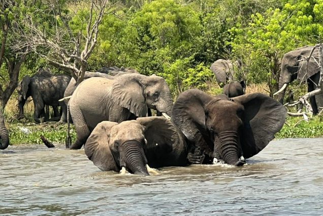 The day starts early with a morning game drive in the Kasenyi plains, one of the best wildlife-viewing areas in the park. You may encounter elephants, buffaloes, lions, Uganda kobs, warthogs, and various antelope species, as well as numerous bird species. After lunch and a short rest at the lodge, you will enjoy an afternoon boat cruise along the Kazinga Channel, which connects Lake Edward and Lake George. This cruise offers excellent opportunities to see hippos, crocodiles, elephants, and abundant birdlife at close range. Dinner and overnight at the lodge.